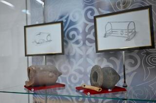 Экспозиция впервые представила широкой общественности ценные артефакты из дюнного захоронения эпохи энеолита, обнаруженного в комплексе Тайсойган Атырауской области.