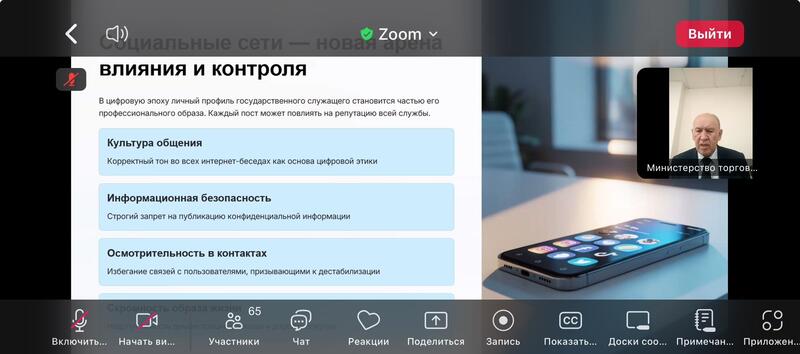 10 сентября 2025 года уполномоченным по этике Министерства совместно с юридическим департаментом проведен семинар на тему: «Публичное выступление, СМИ, соцсети и антикоррупционная профилактика».Мероприятие было направлено на укрепление правовой и этической культуры государственных служащих, повышение их ответственности при взаимодействии с гражданами, средствами массовой информации и в цифровом пространстве.В ходе семинара особое внимание уделено следующим вопросам:- Этика публичных выступлений и цифровая культура. Участникам рекомендовано соблюдать корректный тон в интернет-беседах, официальных выступлениях и публикациях в социальных сетях, что является важнейшей составляющей цифровой этики.- Противодействие лудомании. Подчеркнута недопустимость участия государственных служащих в азартных играх и посещения игорных заведений.- Недопущение дискриминации. Обращено внимание на строгий запрет любых форм дискриминации женщин, а также необходимость уважительного отношения ко всем гражданам независимо от их пола, социального положения или иных признаков.- Свобода совести и вероисповедания. Отдельно акцентировано, что понуждение сотрудников или граждан к участию в деятельности религиозных организаций является грубым нарушением этических норм и законодательства.Семинар завершился обсуждением практических аспектов профилактики коррупционных рисков (правил поведения в командировках, при проведении проверок и вне рабочего времени), а также разъяснением ограничений и запретов, установленных законодательством.