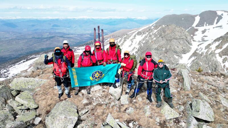 Все спасатели справились с поставленной задачей и на вершине свыше двух тысяч шестисот метров развернули флаг МЧС РК.