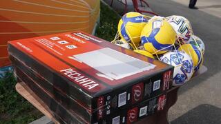 Организаторы подготовили подарки - футбольные мячи, велосипед и обогреватель, но самым ценным для детей стало внимание и тепло, которое им подарили спасатели.