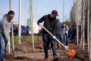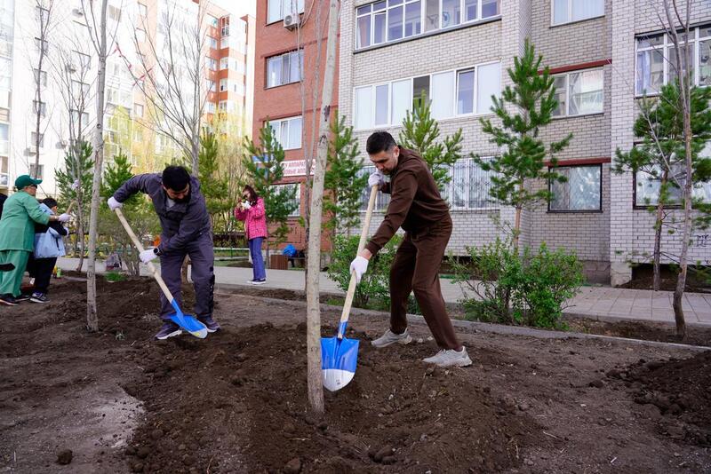 На пересечении улицы К. Кумисбекова и проспекта Абая была организована посадка деревьев. В мероприятии приняли участие более 100 работников торгово-развлекательных центров столицы: «Asia Park», «Сарыарка», «Коктал», «Аружан», «Хан Шатыр», «Эталон», «Астаналық», которые в рамках акции высадили 350 саженцев.