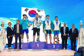 Первое место занял представитель Южной Кореи Инхок Ким с результатом 334 кг (151+183), бронза досталась узбекистанцу Хусонбаю Халмуратову, который поднял в сумме 324 кг (152+172).