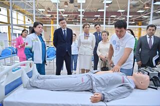 Далее Тимур Султангазиев побывал на городской станции скорой помощи, осмотрел симуляционный центр, оснащенный современным оборудованием для тренировки базовой и расширенной сердечно-легочной реанимации, в том числе у детей при оказании помощи при травмах на догоспитальном этапе.