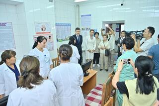 Первый вице-министр здравоохранения РК Тимур Султангазиев посетил в ходе рабочей поездки в г.Шымкент ряд медицинских учреждений, включая поликлинику №6, городскую клиническую и детскую клиническую больницы, а также станцию скорой медицинской помощи.