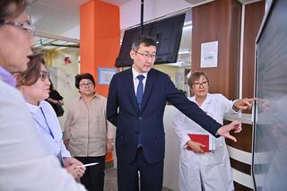 В городской детской клинической больнице Т.Султангазиев ознакомился с работой приемного покоя, травматологического пункта, деятельностью стационара и планами по реновации учреждения. В среднем за год в приемный покой поступают около 121 тысячи пациентов, из них более 20 тысяч получают стационарное лечение, 5500 - проходят оперативное лечение. Приемное отделение оснащено необходимым диагностическим оборудованием, включая лаборатории, УЗИ и рентген-аппаратами.