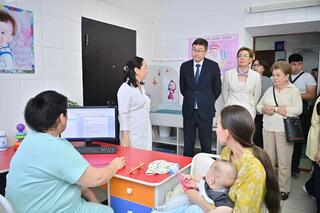 Далее первый вице-министр здравоохранения посетил городскую поликлинику №6. В этом году здесь были открыты Центр развития и раннего вмешательства и отделение неотложной медицинской помощи. Это важное звено в охране здоровья ребенка.