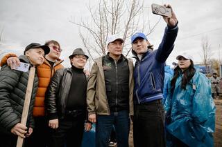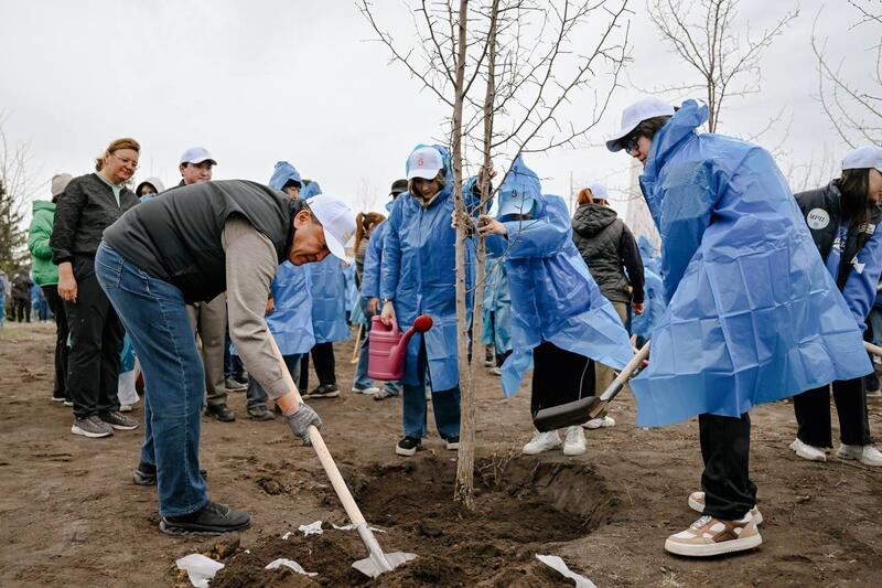 Аким области Гауез Нурмухамбетов принял участие в посадке деревьев на озере Пестрое, где в настоящее время ведется строительство современного экопарка.