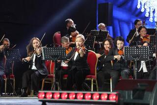 Публика с восторгом встретила Сулужан Елубаеву, которая исполнила на пан-флейте композицию Джеймса Ласта «Одинокий пастух». Ведущий солист театра «Астана Опера» Расул Жармагамбетов представил каватину Фигаро из оперы Россини «Севильский цирюльник». Народная артистка Казахстана Джамиля Баспакова блестяще исполнила трогательную песню Ардити «Il Bacio», а ведущий солист КазНТОБ имени Абая Балуан Беркенов — арию Каварадосси из оперы Пуччини «Тоска».