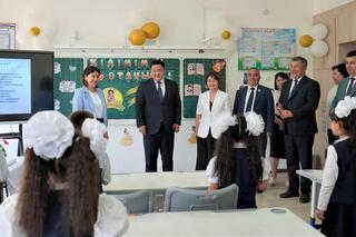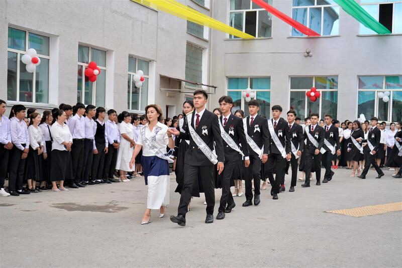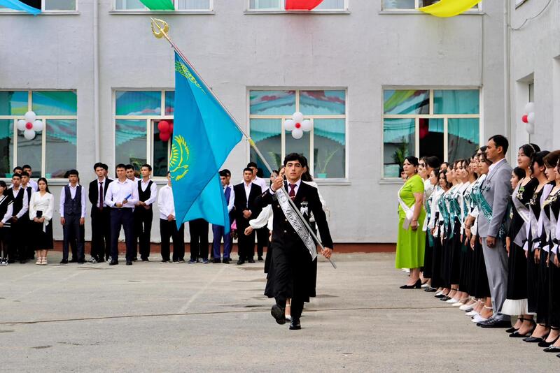 Аким города Кентау Жандос Тасов принял участие в последнем школьном звонке в общей средней школе имени М. Кашгари в селе Карнак.