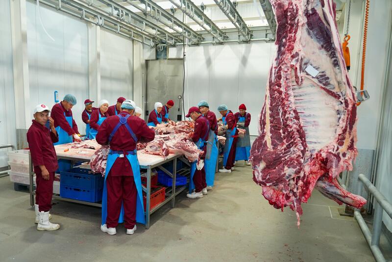 В ходе визита аким области ознакомился с работой убойного цеха. Годовая мощность цеха стоимостью 1,1 млрд тенге достигает охвата 60 тысяч голов скота. Здесь работают 10 человек.