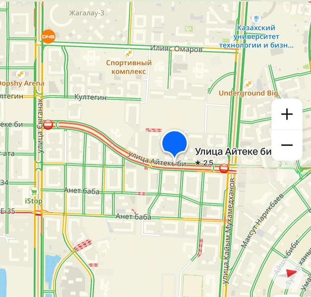 В связи с проведением ремонтных работ будет частично поэтапно перекрыто движение на данном участке. При этом движение автотранспортных средств будет организовано только в одном направлении с 15 по 18 сентября от ул. К. Мухамедханова в сторону ул. Сыганак, затем с 19 по 23 сентября от ул. Сыганак в сторону ул. К. Мухамедханова.