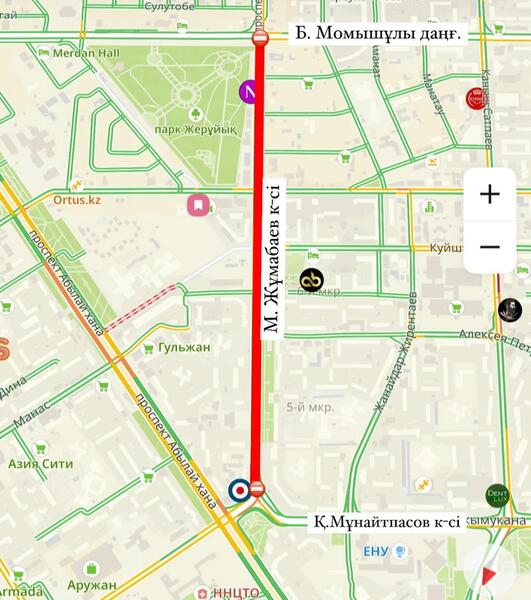 Участок улицы Жумабаева временно перекроют на ремонт в Астане