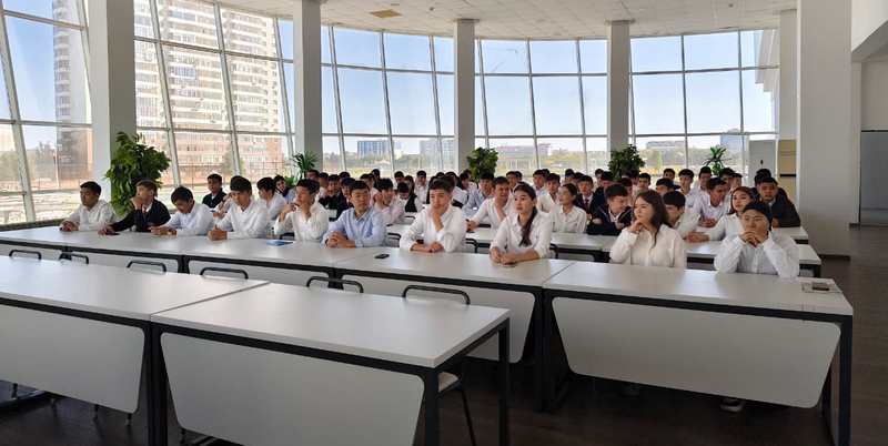 Кездесу соңында арнайы бейнеролик ұсынылып, студенттер мамандарға көкейлеріндегі сұрақтарын қойып, пайдалы кеңестер алды.
