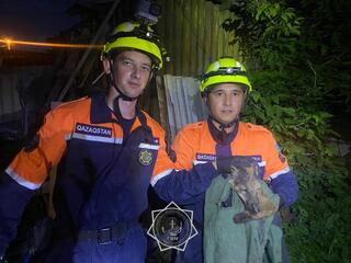 13 июля ночью в посёлке Алтын-Дала животное упало в колодец. Предполагая, что это котёнок, спасатели выехали на место. Используя альпинистское снаряжение и дыхательный аппарат, спасатель спустился на глубину 9 метров и поднял на поверхность испуганного, но невредимого щенка.
