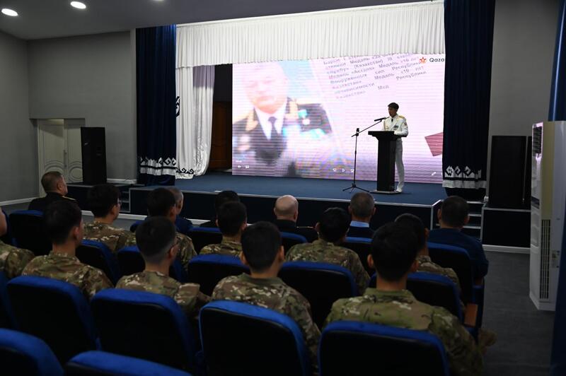Дополняя рассказ о служебном пути Мухтара Алтынбаева, ветераны поделились собственным опытом и напомнили студентам о ценности воинской чести и гражданской ответственности.