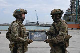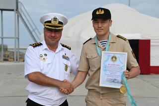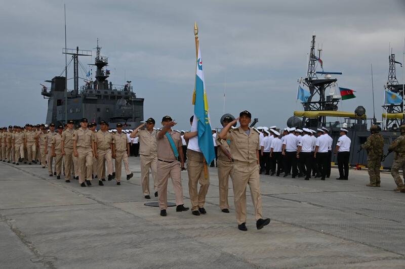 На пирсе военно-морской базы Военно-морских сил Вооруженных сил Казахстана состоялась торжественная церемония закрытия совместных военно-морских учений «Каспийский бриз – 2025».