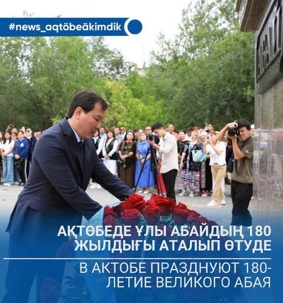 В Актобе празднуют 180-летие великого Абая.С утра в Актобе на бульваре, носящем имя великого мыслителя, поэта и просветителя Абая Кунанбаева прошел литературный фестиваль «Абай күні».Праздничное мероприятие началось с торжественной церемонии возложения цветов к памятнику Абаю. Почтить память мыслителя пришли глава регионаАсхат Шахаров, аким города Азамат Бекет, представители общественности, ученые, писатели, деятели культуры, студенты и горожане.«Абай - это не только гордость казахского народа, но и духовное богатство всего человечества. Его философия, стихи и проза учат нас быть честными, справедливыми, стремиться к знаниям и жить в согласии. Сегодня, отмечая 180-летие великого мыслителя, мы отдаем дань уважения его бессмертным идеям. В Актюбинской области мы продолжим популяризировать творчество Абая и прививать молодежи ценности, которые он завещал. Пусть его наследие и дальше вдохновляет нас на созидание и единство», - сказал в поздравительной речи аким области.