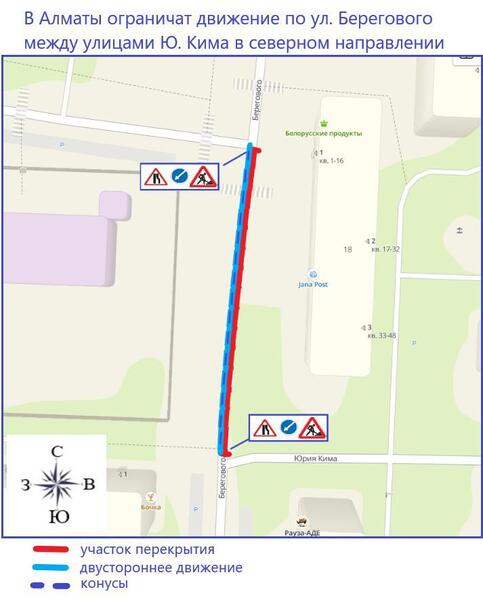 В Алматы частично ограничат движение на пересечении ул. Берегового и Ю. Кима