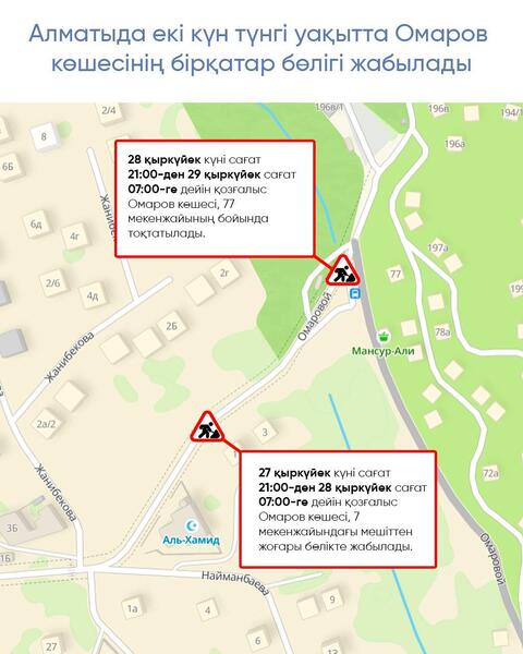 В Алматы на две ночи перекроют участки улицы Омаровой