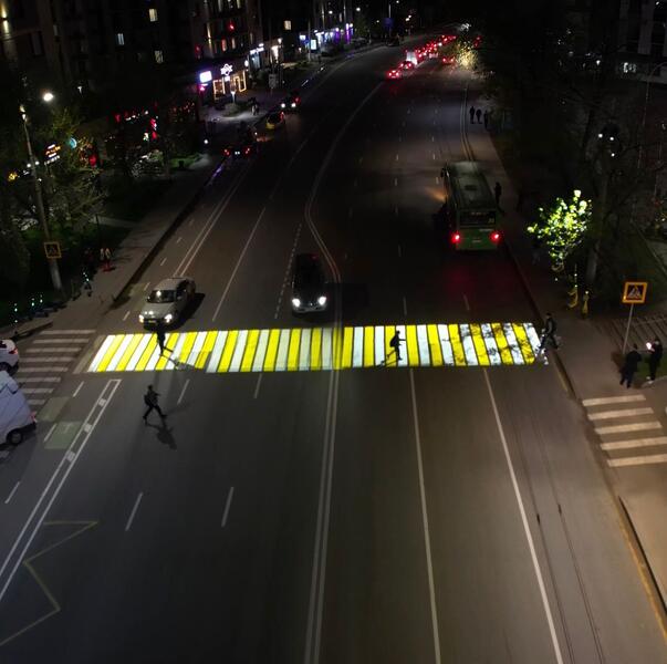 В Алматы на ул. Сатпаева установили проекционное освещение для пешеходов