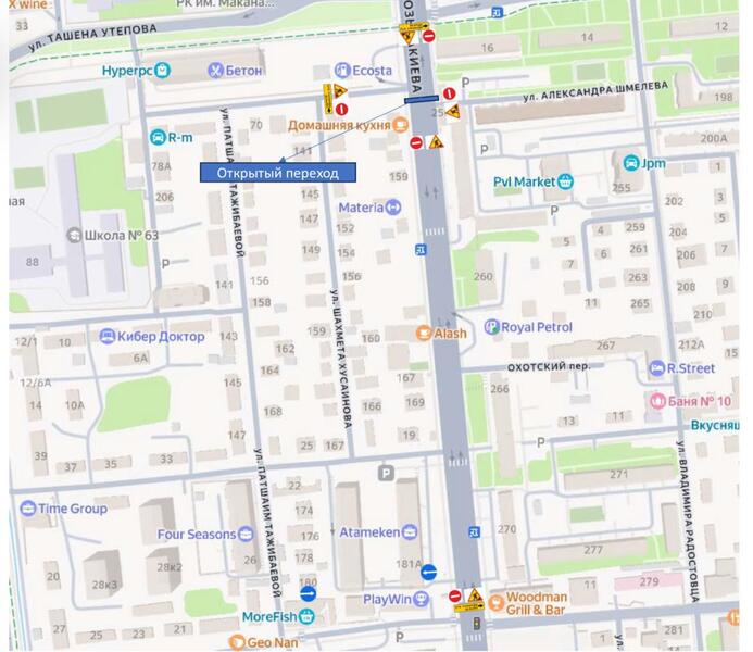 Также ограничения затронут улицу Ауезова — въезд в район Атакента (параллельно улице Тимирязева).