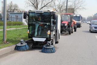 С началом зимнего периода коммунальная техника проходит переоборудование под сезонный формат работы. Спецтехника оснащается пескоразбрасывающими установками, плужно-щеточным оборудованием и другим необходимым инвентарем для оперативной очистки дорог, тротуаров и общественных пространств от снега и наледи.