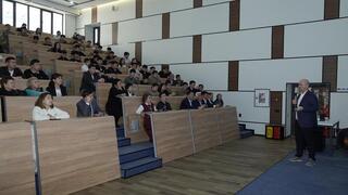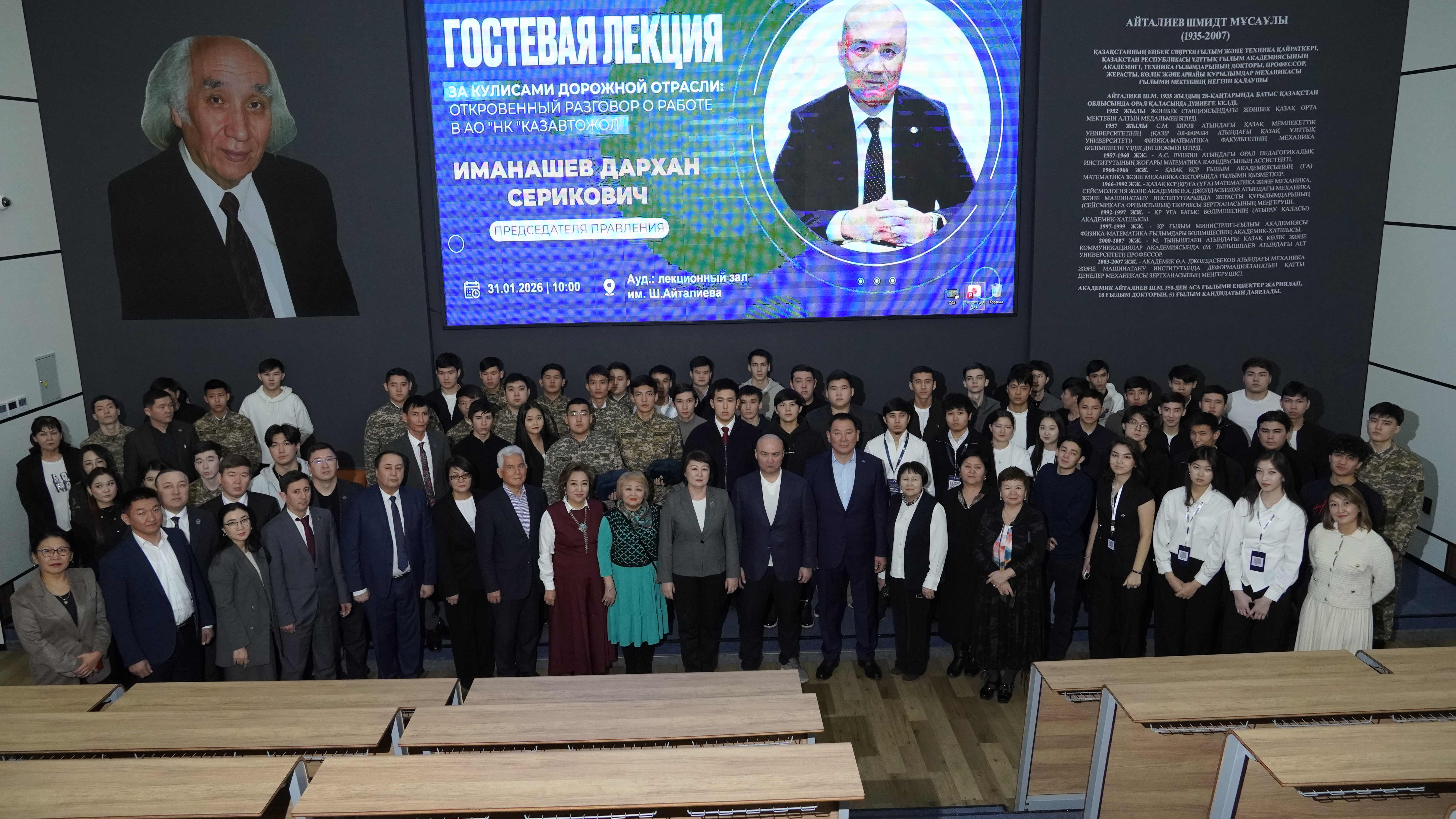 Во время встречи со студентами Дархан Иманашев рассказал о развитии дорожной отрасли в Казахстане, актуальных проблемах сектора и перспективах транспортной инфраструктуры, а также осветил ключевые направления деятельности компании. Кроме того, он ответил на вопросы студентов.