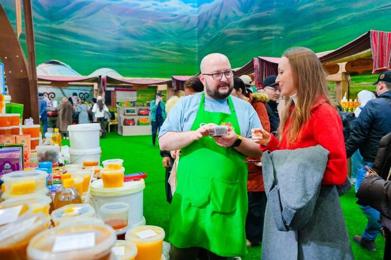 На ярмарке участвуют 50 казахстанских производителей. Посетители могут приобрести натуральные продукты, познакомиться с локальными брендами и поддержать национальное производство.