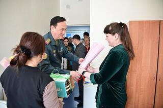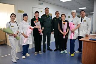 В Международный женский день начальник департамента воспитательной и идеологической работы Министерства обороны полковник юстиции Тлеухан Басхожаев посетил Главный военно-клинический госпиталь.