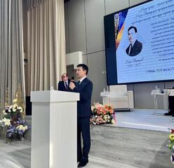 Председатель Комитета международной информации Министерства иностранных дел РК Ерлан Жетыбаев зачитал собравшимся поздравительное письмо от имени главы внешнеполитического ведомства Ермека Кошербаева.