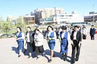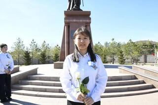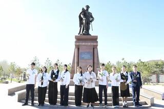 В Астане школьники возложили цветы к памятнику Бауыржана Момышулы