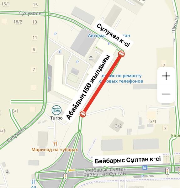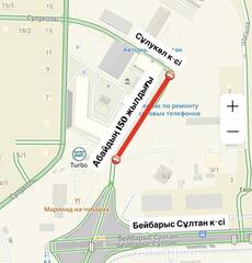 - с 5 апреля по июнь текущего года планируется полное перекрытие движения автотранспортных средств на участке улицы Е68 от ул. А. Бектурова до ул. Толе би в связи с началом строительных работ.