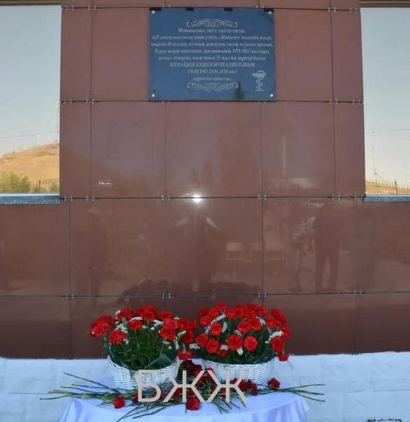 Мемориальная доска установлена на фасаде здания районной больницы. В стенах этого медицинского учреждения Казкен Жумакаев работал с 1975 по 2015 год, из которых 15 лет был её директором.
