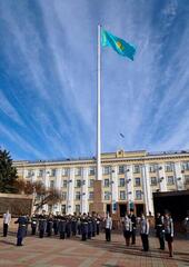 В честь Национального праздника - Дня Республики на центральной площади состоялась церемония поднятия Государственного Флага