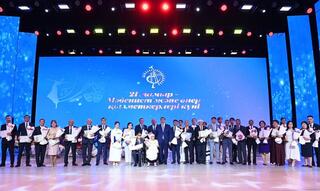 В Кызылорде в Центре искусств состоялся торжественный вечер, посвященный Дню работников культуры и искусства. С профессиональным праздником работников культуры поздравил аким области Нурлыбек Налибаев.Глава региона отметил их особую роль в сохранении национальной идентичности, вклад в духовное развитие общества.– Президент страны дал особую оценку земле Сыра, назвав ее золотой колыбелью культуры и искусства нации, – сказал Н. Налибаев. – Глава государства предложил провести следующее заседание Национального курултая в Кызылорде, которая в свое время была столицей Казахской АССР. Для нас это высокая честь и положительная оценка той работе, которая проводится в области. Нынешний год – особенный для всей страны и для нашего региона. Мы отметили 80-летие Великой Победы, 30-летие Ассамблеи народа Казахстана, стартовали мероприятия к 180-летию великого Абая Кунанбаева, 70-летию – космодрома «Байконур». В этом году 70-летие отмечает театр имени Н.Бекежанова. В рамках мероприятий, посвященных 100-летию переноса столицы Казахстана в Кызылорду состоялся республиканский айтыс «Үш дәуірдің астанасы – Қызылорда», будут организованы конкурсы, фестивали, в том числе республиканский конкурс певцов «Отан-Ана» имени Батырхана Шукенова, международный фестиваль «Коркыт и мелодии Великой степи».Глава региона поздравил акына и жырау Айбека Танирбергенова, который на днях получил из рук Президента государственную награду – медаль «Ерен еңбегі үшін».Как отметил Н. Налибаев, благодаря государственной поддержке в области реализуются большие проекты в сфере культуры и искусства. В прошлом году в рамках объявленного в регионе Года духовности во всех районах были сданы в эксплуатацию центры «Руханият». В Кызылорде появились новые объекты – многофункциональный Центр искусств, «Анаға тағзым», «Отбасы орталығы». Недавно начала свою работу Академия инновации и творчества «Сыр жұлдыздары». За последние три года в целях поддержки творческой молодежи сданы в эксплуатацию четыре дворца школьников, две школы искусств, в настоящее время в Шиелийском районе ведется строительство Дворца школьников на 200 мест и Школы искусств на 50 мест. За счет спонсорских средств завершается строительство здания музыкального колледжа имени Казангапа. В новое здание переедет областной историко-краеведческий музей. Завершается реконструкция городского парка культуры и отдыха. Все эти объекты будут сданы в эксплуатацию к 1 июня – Международному Дню защиты детей. Также при финансовой поддержке национальной компании «Казатомпром» в Кызылорде заложен фундамент Дома дружбы.Доказательством особой поддержки работников культуры стало предоставление им 40 служебных квартир, а также ежегодной премии акима области «Туран».По традиции в рамках торжества группа лучших работников и ветеранов отрасли была отмечена Почетной грамотой области, премией «Туран», медалью «Мәдениет жанашыры» и другими ведомственными наградами. Орденом «Құрмет» была награждена солистка областной филармонии Умит Медеуова. Лучшим творческим коллективам были переданы в дар кобызы.Торжественное собрание продолжилось праздничным концертом.