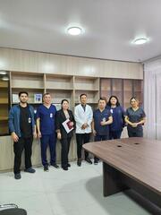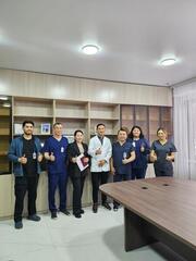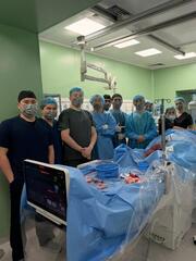 В составе операционной бригады — интервенционный кардиолог Ерик Отарбаев Центра сердца UMC города Астаны, ассистенты — интервенционные кардиологи ГКЦ Оразбек Сахов и Бауржан Аипов.