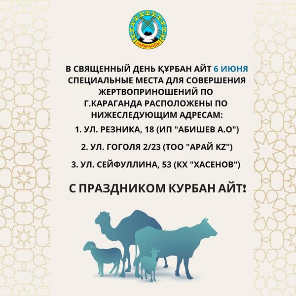 В Караганде определили места для жертвоприношений на Курбан-айт