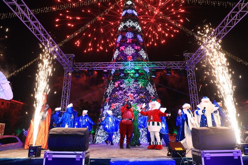 Вокруг ёлки собрались жители и гости Караганды, чтобы вместе окунуться в атмосферу праздника.