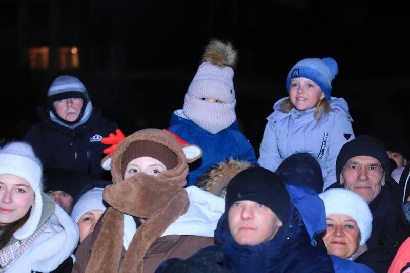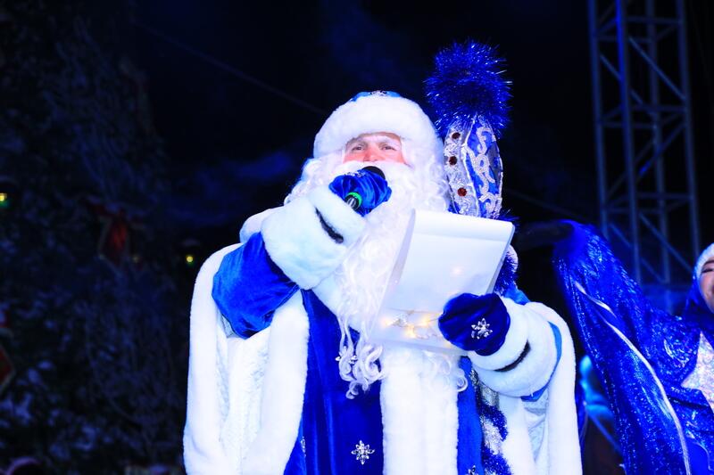 — Поздравляю всех с наступающим Новым, 2026 годом, друзья! Пусть свет новогодней ёлки озарит наш город, а каждый войдёт в новый год с улыбкой и ощущением счастья. Пусть он принесёт здоровье, удачу и благополучие. Мира и процветания нашей стране! — обратился к горожанам Дед Мороз.
