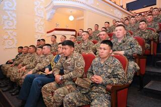 – Я с детства мечтал быть военным. Окончил Суворовское училище, пошёл в армию, и вот стал офицером, отучившись четыре года в Петропавловской академии национальной гвардии. Это большая честь, что выбрали меня из такого большого количества людей. Чтобы достичь успехов, надо просто честно выполнять свой долг. Я провожу воспитательную работу среди солдат срочной службы в воинской части 6505. Организую культурно-досуговые мероприятия, – рассказал офицер Жумаш Кабдуалиев.