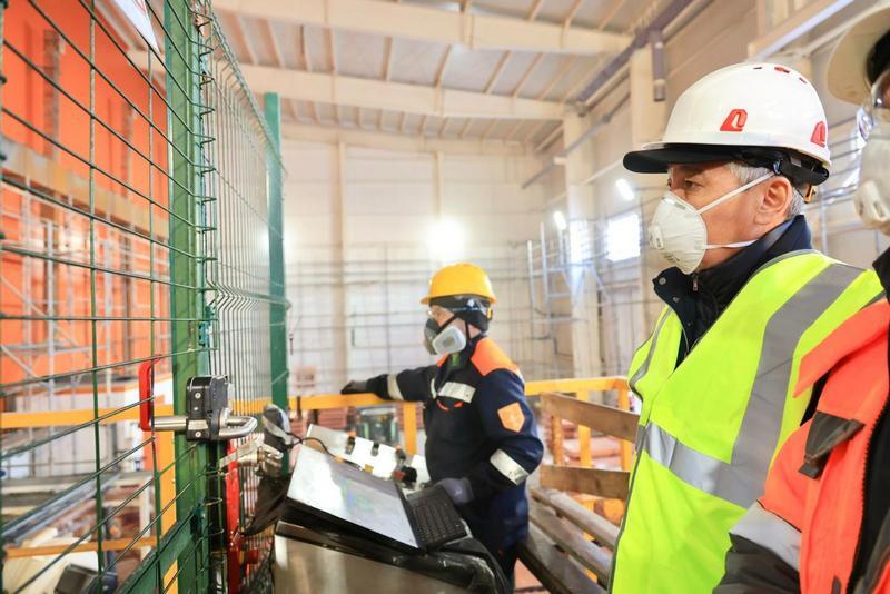 Рабочая поездка главы региона продолжилась на месторождении «Алмалы», где он ознакомился с работой завода Sary-Arka Copper Processing.
