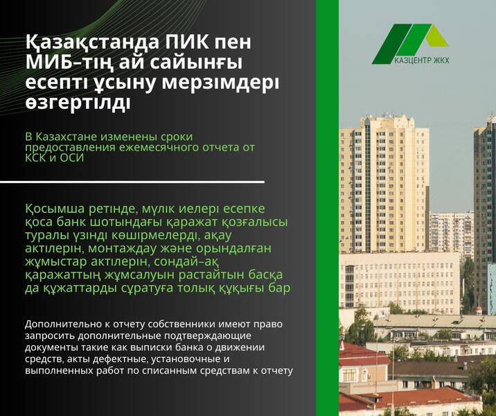 В Казахстане изменены сроки предоставления ежемесячного отчета от КСК и ОСИ