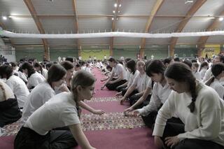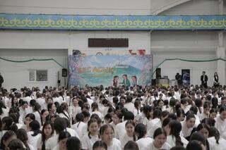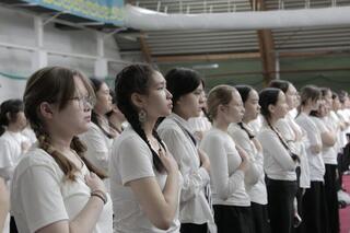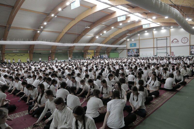 В Теннисном центре г. Кокшетау около 1500 учениц 27 городских школ одновременно приняли участие в национальной игре бес асық.