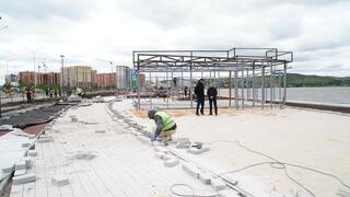 Как доложил руководитель проекта ТОО «АБК Автодор НС» Асхат Галимжанов, на сегодняшний день выполнено порядка 80% работ. Все необходимые материалы уже завезены на участок. Активно ведётся установка и обустройство малых архитектурных форм, также осуществляется посадка деревьев. Участок условно поделен на три зоны, и на каждой из них работы идут полным ходом.