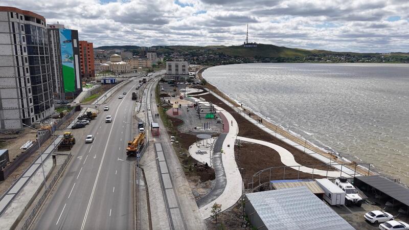 Особое внимание в ходе поездки было уделено строительству набережной озера Копа. Проект реализуется в рамках социальной ответственности бизнеса за счёт средств АО «Казцинк».