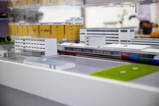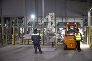 После официальной части гости ознакомились с производственными мощностями комплекса, где состоялся символический запуск предприятия — нажатием красной кнопки и гудком локомотива.
