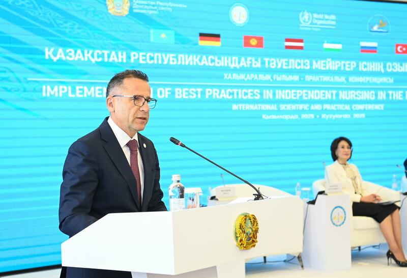 В Кызылорде состоялась международная научно-практическая конференция на тему «Внедрение передового опыта независимого сестринского дела в Республике Казахстан» с участием акима области Нурлыбека Налибаева.В конференции приняли участие министр здравоохранения РК Акмарал Альназарова, руководитель Странового офиса Всемирной организации здравоохранения (ВОЗ) в Казахстане Скендер Сыла, в онлайн-режиме директор Европейского регионального бюро ВОЗ Ханс Клюге, представители Германии, Кыргызстана, Латвии, Узбекистана, России, Турции, Финляндии, ученые, руководители региональных управлений здравоохранения, врачи, медсестры, руководители медицинских учебных заведений и клиник.Цель конференции — изучение международного опыта и развитие независимого сестринского дела, повышение роли среднего медицинского персонала в системе здравоохранения, а также укрепление их управленческих, экспертных и клинических компетенций.Аким области рассказал о реализации Поручений Главы государства и новых инициативах в сфере медицины.Как отметил глава региона, 2025 год объявлен Президентом Касым-Жомартом Токаевым «Годом рабочих профессий» и подчеркнул вклад медицинских специалистов в улучшение здоровья населения. В медицинских учреждениях нашего региона трудятся около 12 тысяч медицинских сестер. В рамках национального проекта «Модернизация сельского здравоохранения» во всех районах построено 28 медицинских объектов. Открыт новый Центр крови. В целях защиты жизни матери и ребенка на базе многопрофильной областной больницы запущен новый аппарат МРТ, открыто перинатальное отделение на 70 коек. В областном центре ведется строительство многопрофильной больницы на 300 коек с поликлиникой и онкологическим отделением. В прошлом году проведен капитальный ремонт 8 медицинских объектов, теперь тепловые сети 6 объектов будут переведены на газ. Приобретено необходимое медицинское оборудование, уровень оснащенности увеличился на 87,1%. Особое внимание уделяется обеспечению медицинской сферы квалифицированными кадрами.На конференции выступили Акмарал Альназарова, Ханс Клюге, Скендер Сыла, председатель правления РГП на ПХВ «Национальный научный центр развития здравоохранения имени С. Каирбековой Министерства здравоохранения, кандидат медицинских наук Гульнар Кулкаева, директор Кызылординского высшего медицинского колледжа, кандидат медицинских наук Жанар Калмакова.За вклад в развитие здравоохранения Кызылординской области ряд специалистов были награждены медалью «Еңбек ардагері», нагрудными знаками «Денсаулық сақтау ісіне қосқан үлесі үшін», «Денсаулық сақтау ісінің үздігі», благодарственными письмами акима области и Всемирной организации здравоохранения.