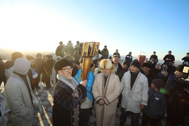 По традиции на вершине Отпан тау был зажжён «Огонь единства», а в этом году символическая эстафета передана от потомков Тазике ата потомкам Кунанорыс.