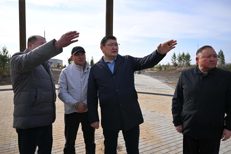 Аким области Берик Уали в ходе объезда города посетил строительную площадку нового парка в микрорайоне Карагайлы.