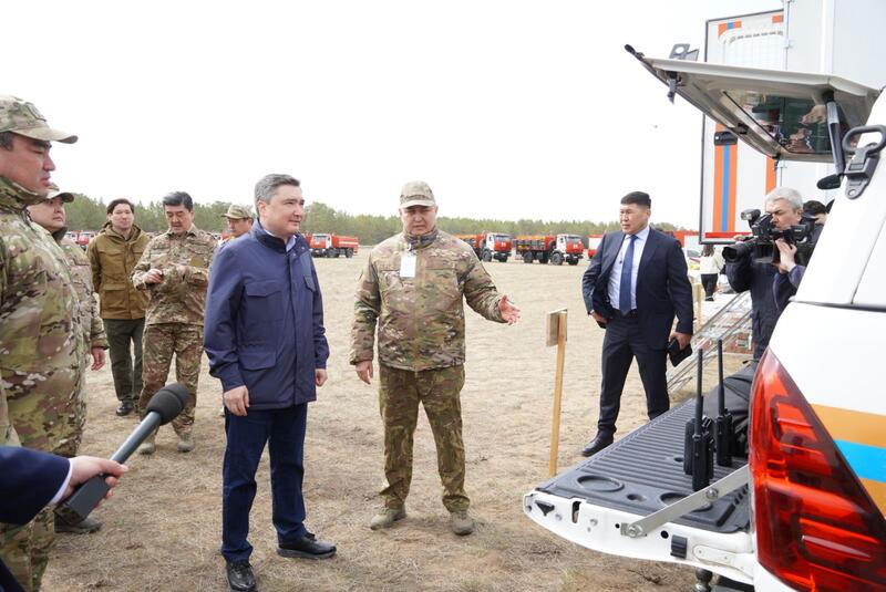 В государственном лесном природном резервате «Семей орманы» в присутствии Премьер-министра РК Олжаса Бектенова, министра по ЧС Чингиса Аринова, министра экологии и природных ресурсов Ерлана Нысанбаева и акима области Абай Берика Уали проведены учения по ликвидации условного лесного пожара.